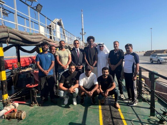 في بادرة إنسانية، تابعت القنصلية المصرية بدبي أوضاع البحارة المصريين على متن سفينة “Petro 1” العالقة في ميناء خالد بالشارقة، وذلك بعد استقرار الأحوال الجوية التي حالت دون دخولها سابقًا.