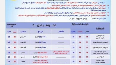 نعرض لكم درجات الحرارة المتوقعة على محافظات ومدن مصر: