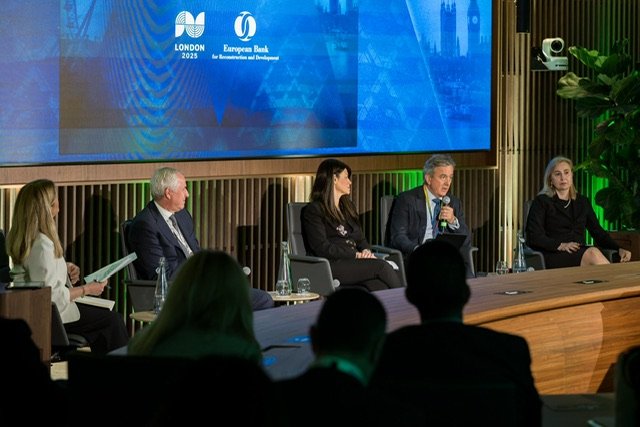 شاركت الدكتورة رانيا المشاط، وزيرة التخطيط والتنمية الاقتصادية والتعاون الدولي ومحافظ مصر لدى البنك الأوروبي لإعادة الإعمار والتنمية، في جلسة نقاشية بعنوان “آفاق خضراء: التحول المناخي للبنوك في الأسواق الناشئة”. جاء ذلك ضمن فعاليات الاجتماع السنوي الرابع والثلاثين ومنتدى الأعمال للبنك، الذي انعقد في المملكة المتحدة في الفترة من 13 إلى 15 مايو 2025، تحت شعار “توسيع الآفاق، قوى مستدامة”. وقد شهد الاجتماع مشاركة واسعة من رؤساء الدول والحكومات وصناع القرار وممثلي المنظمات الدولية.