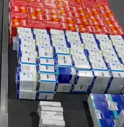بتوجيه من طاهر سعيد مكي، مدير إدارة الحركة، تم تفتيش الحقائب بأجهزة الأشعة السينية، والتي كشفت عن وجود عبوات متشابهة بداخلها. وبالتفتيش اليدوي، تم العثور على 615 أمبول وزجاجة دوائية متنوعة، من بينها “نيوربيون” و”Octagam 2.5″ و”Flebogamma 5%”.