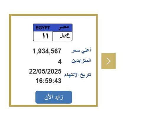 لوحة سيارة بـ 2 مليون جنيه! مزاد إلكتروني يشعل المنافسة على لوحة «ع س ل 11»
