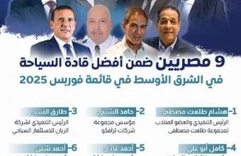 9 مصريين في قائمة فوربس لأقوى قادة السياحة والسفر بالشرق الأوسط 2025
