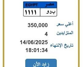 شهدت بوابة مرور مصر الإلكترونية مزادًا ساخنًا على لوحة معدنية مميزة تحمل رقم «أ س د 9111»، حيث وصل سعرها…