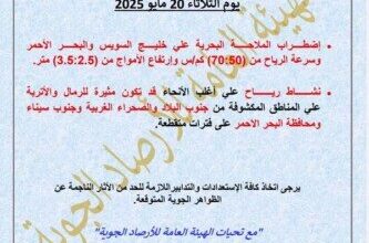تستعد مصر لمواجهة طقس غير مستقر غداً الثلاثاء، 20 مايو 2025، حيث حذرت الهيئة العامة للأرصاد الجوية من اضطرابات في…