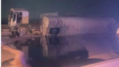 انقلاب شاحنة مازوت على طريق السويس – القاهرة.. نجاة السائق بأعجوبة!