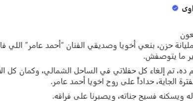 خيم الحزن على الوسط الفني ومحبي الأغنية الشعبية برحيل الفنان الشاب أحمد عامر، عن عمر يناهز 30 عامًا، إثر أزمة…