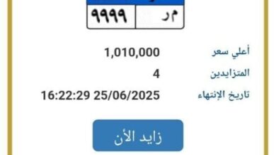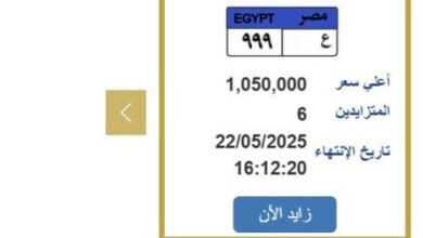 شهدت بوابة مرور مصر الإلكترونية مزادًا ساخنًا على لوحة معدنية مميزة تحمل الرقم “ع 999″، حيث وصل سعرها إلى مليون…