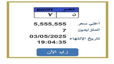 شهدت بوابة مرور مصر الإلكترونية مزادًا ساخنًا على لوحة معدنية مميزة تحمل الرقم “ن 7″، حيث وصل سعرها إلى 5…