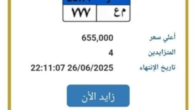 في مشهد يعكس شغف المصريين بالأرقام المميزة للسيارات، أعلنت بوابة مرور مصر الإلكترونية عن مزاد ساخن على لوحة معدنية تحمل…