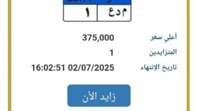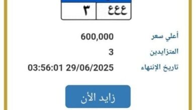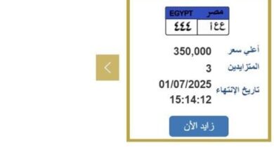 مزاد لوحات السيارات المميزة: لوحة «م و د 444» تصل إلى 325 ألف جنيه! شهدت بوابة مرور مصر الإلكترونية إقبالاً…