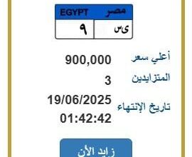 شهدت بوابة مرور مصر الإلكترونية حالة من التنافس الشديد على لوحة معدنية مميزة تحمل رقم «ى س 9»، حيث وصل…